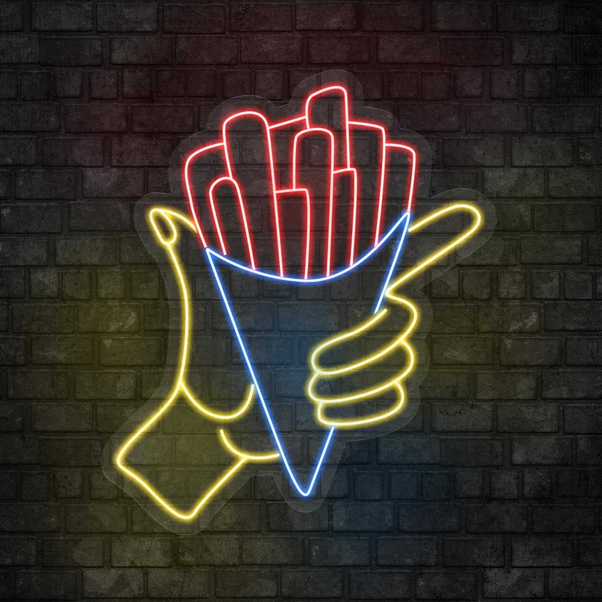 LED neon tasarım; şeffaf pleksi (akrilik) taşıyıcılı modern duvar dekoru. Kafe, ev ve ofislerde duvara güçlü bir vurgu kazandırır.