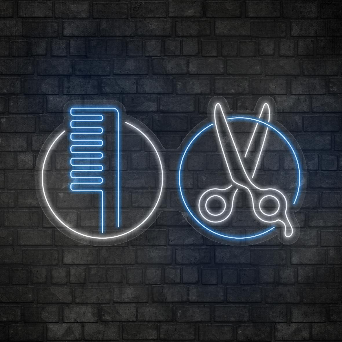 Kuaför Makas ve Tarak Figürlü Led Neon