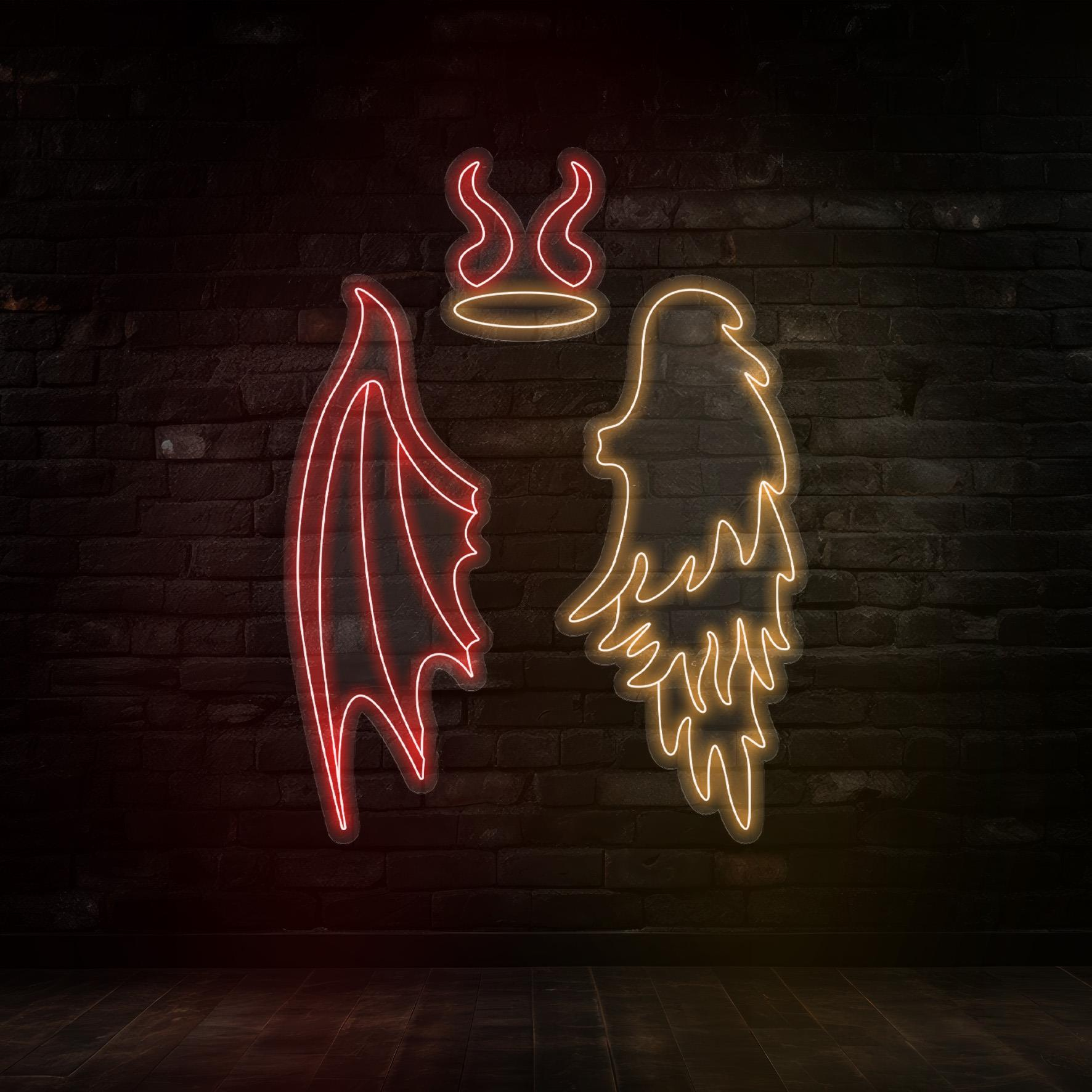 Melek ve Şeytan Kanadı Led Neon