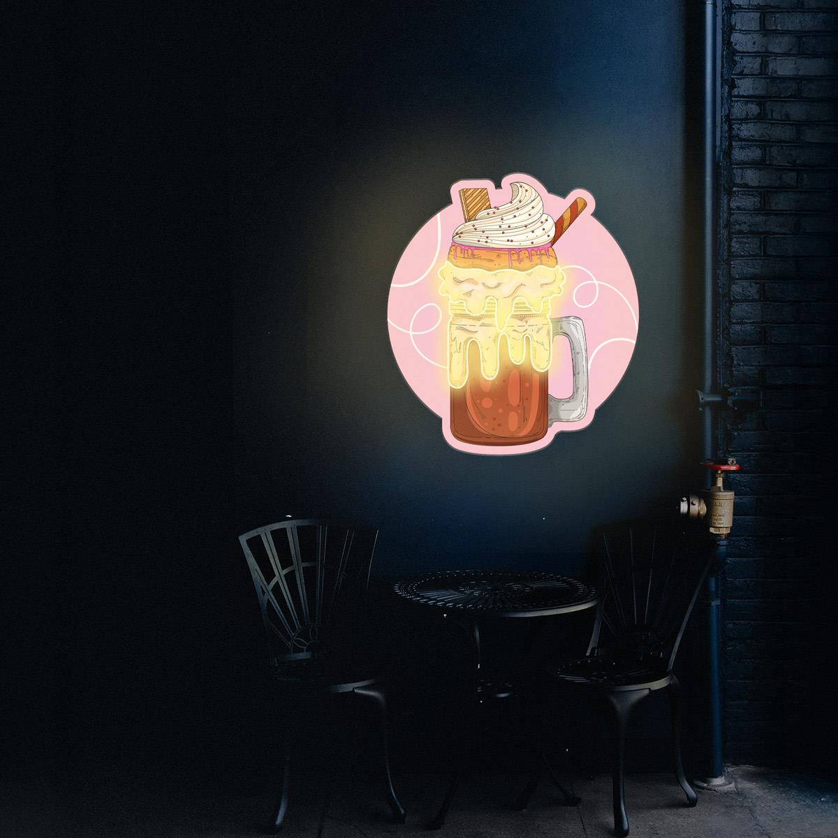 Milkshake Baskılı Neon Tabela